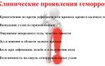 При постоянном воздействии факторов риска на организм сначала формируются внутренние узлы. Наружные развиваются гораздо позже. Поэтому клиническая картина зависит от состояния внутренних венозных узлов. Появляется ощущение дискомфорта, нестерпимый зуд и жжение, происходит выделение крови, выпадение узлов при дефекации. Это относится к симптомам внутреннего геморроя.