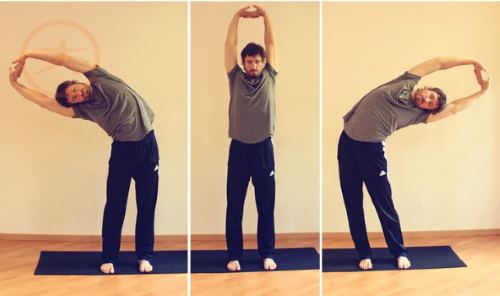Еще именуется «Гнущееся дерево». Сгиб осуществляется только за счет мышц талии, таз остается неподвижным. Нужно сделать по 12 наклонов строго влево и вправо, не отклоняясь кпереди или кзади. Нижняя часть тела образует букву Л и не меняется. Нужно следить за верхними отделами позвоночника, не сутулиться, держать приподнятым подбородок. Считается, что поза способствует переходу содержимого желудка в кишечник.