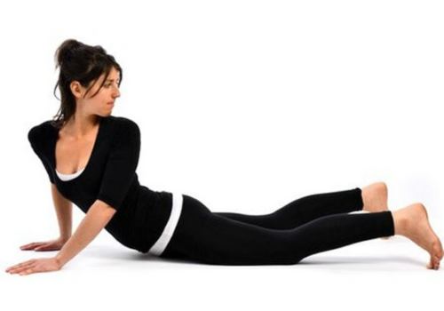 «Поворот кобры» проводится в горизонтальном положении. С упором на носки и выпрямленные руки при ширине стоп в 30-40 см. Производится прогиб в пояснице с разворотом головы влево и вправо до возможности рассмотрения пяток. Работает все тело выше талии. Таз и ноги лежат неподвижно. Рекомендуется произвести по 12 поворотов.