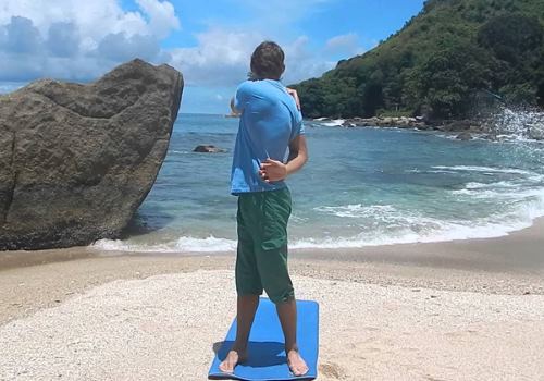 С этой асаны рекомендуется начинать осваивать технику йоги. Из вертикального положения с немного расширенными стопами следует максимально напрячь ягодицы, втянуть живот и, приподнявшись на носках, вытянуться за руками вверх.